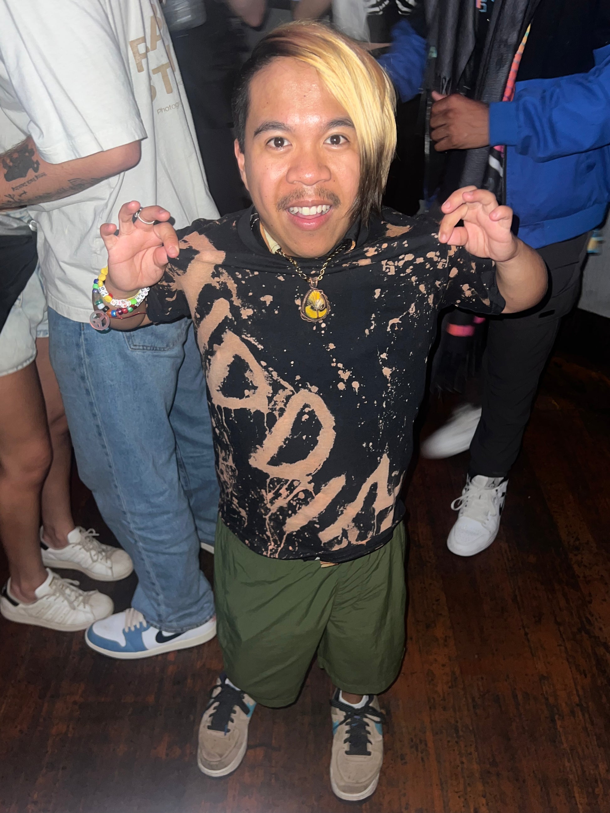 Elevate your streetwear game with the RIDDIM SF Bleach-Dyed T-Shirt, a bold fusion of music and style. Designed for bass lovers and festival-goers, this hand-bleached tee delivers a raw, one-of-a-kind look with a splattered effect that ensures no two pieces are alike.